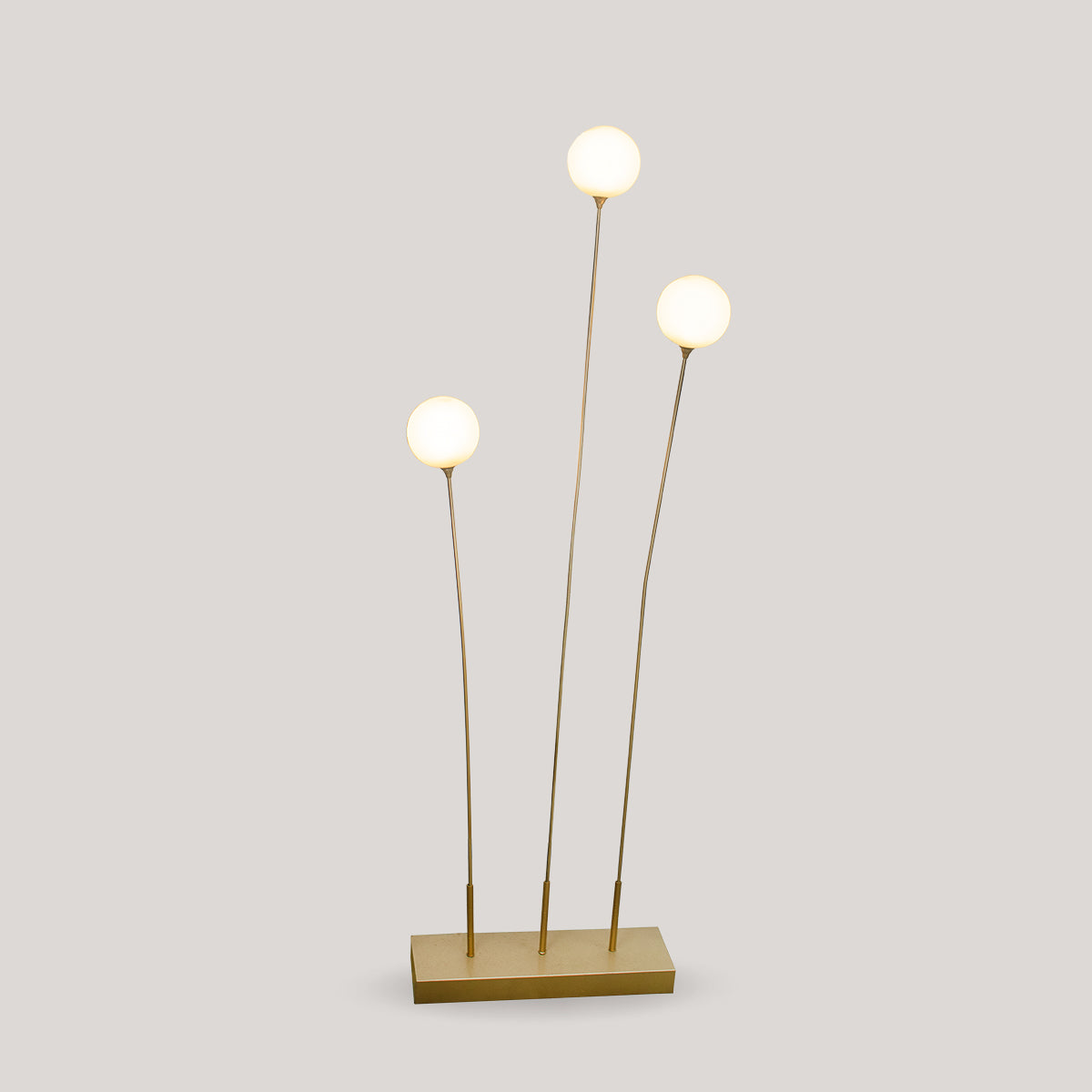 La lampada da terra BRUNA 165 con cavo è un'elegante lampada in colore ottone metallizzato, perfetta per illuminare qualsiasi stanza della casa. È composta da tre lampade rotonde molto resistenti e ad altezze diverse. Il suo corpo metallico è malleabile, in modo da poter orientare le lampade a tuo gusto.