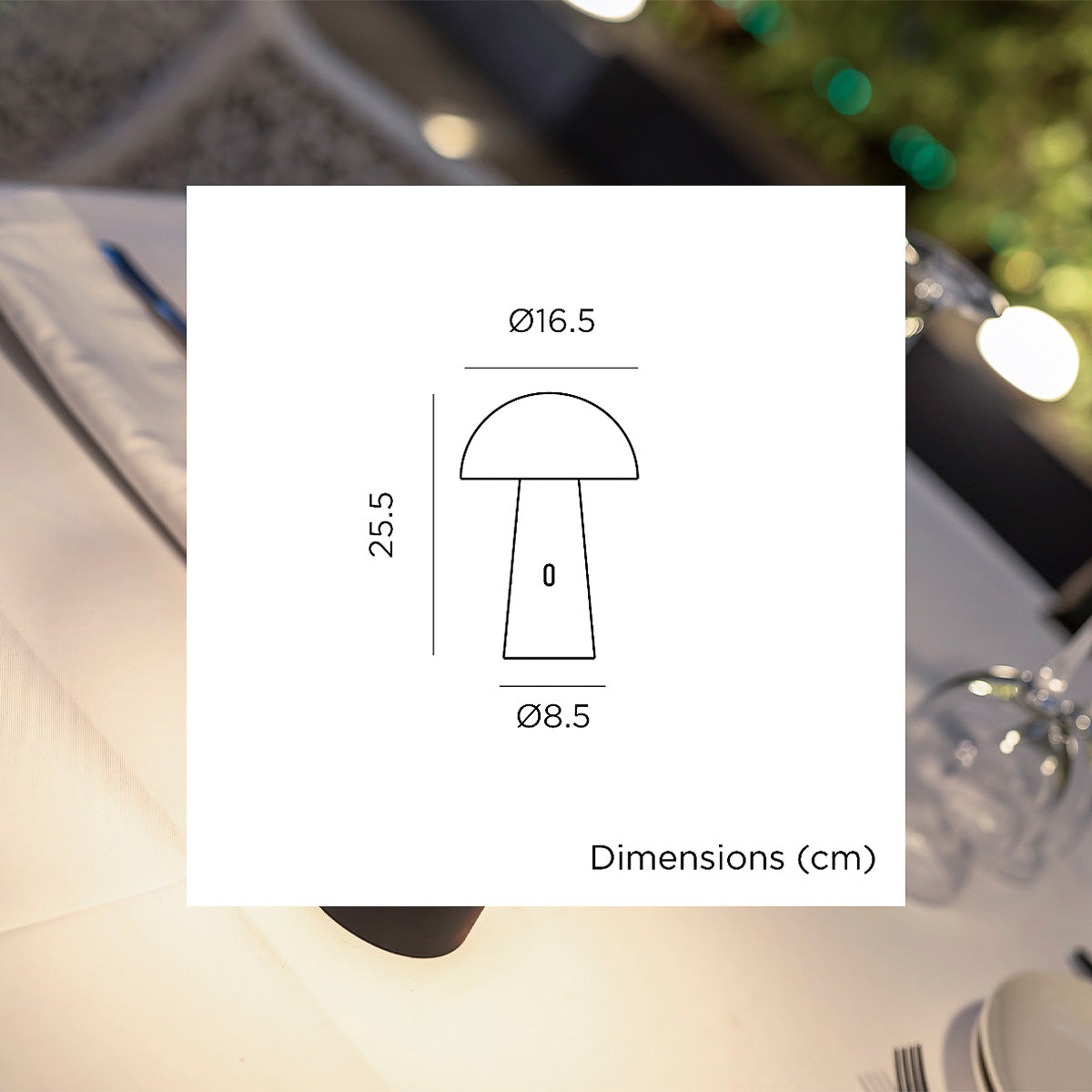 La lampada Shitake è una lampada da tavolo perfetta, che può essere collocata in qualsiasi spazio della casa o del giardino e sicuramente non lascerà nessuno indifferente. È ideale per dare un punto luce al tavolo senza bisogno di cavi. Il paralume è regolabile e consente di orientare i riflettori a proprio piacimento. Per accenderlo e regolarne l'intensità è sufficiente premere il pulsante a sfioramento. La batteria può durare fino a 20 ore (a seconda dell'intensità della luce durante l'uso).