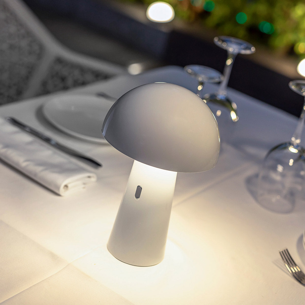 Shitake è una lampada da tavolo senza fili, disponibile in due colori: Bianco o nero.