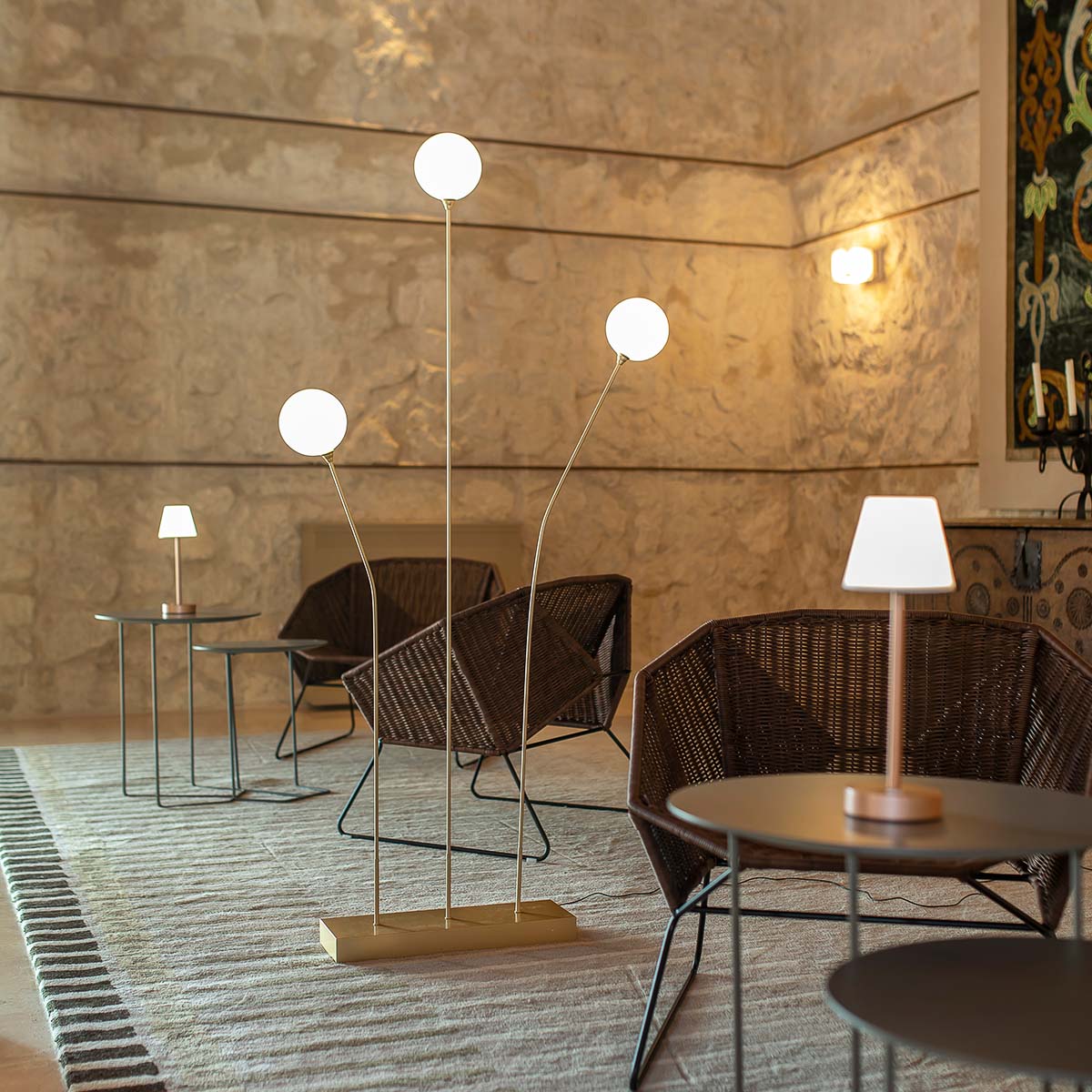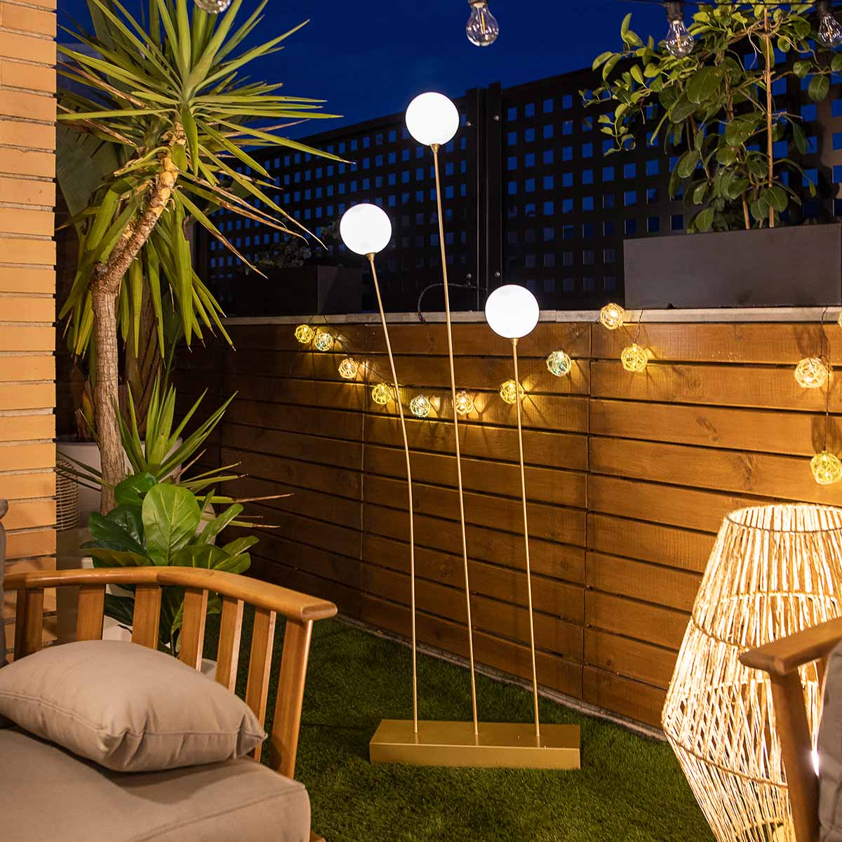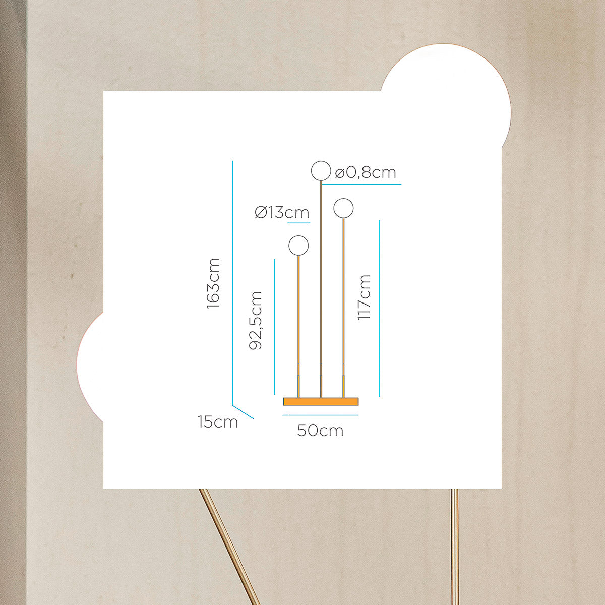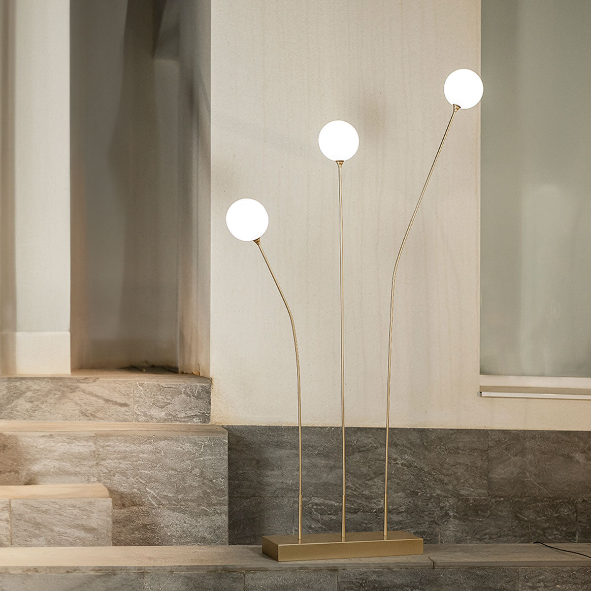 La lampada da terra BRUNA 165 con cavo è un'elegante lampada in colore ottone metallizzato, perfetta per illuminare qualsiasi stanza della casa. È composta da tre lampade rotonde molto resistenti e ad altezze diverse. Il suo corpo metallico è malleabile, in modo da poter orientare le lampade a tuo gusto.