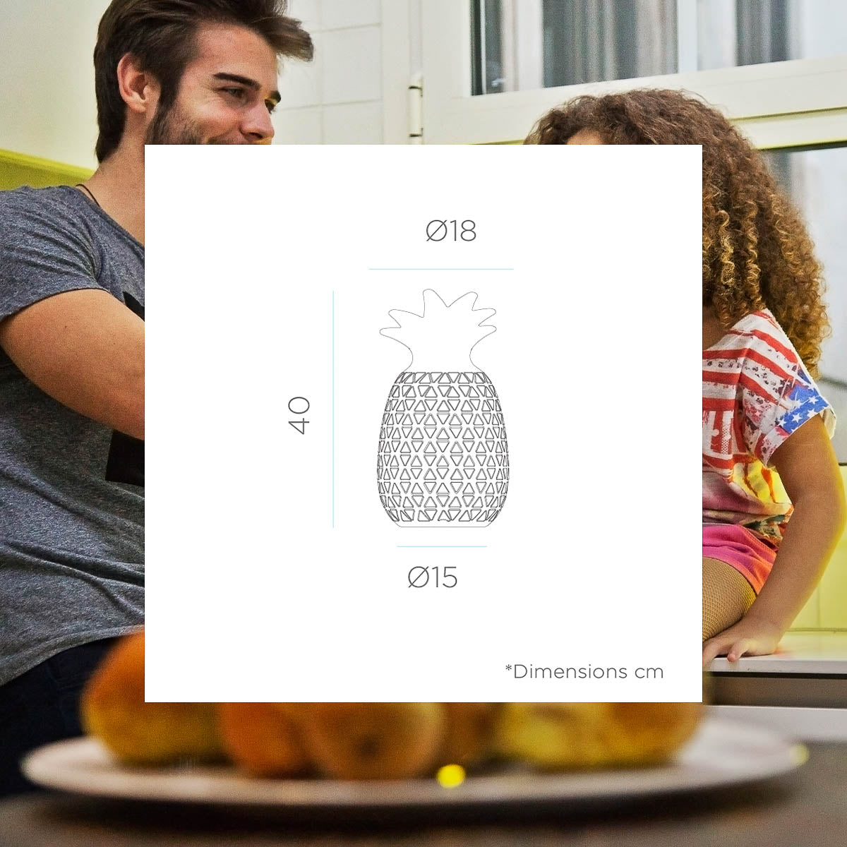 *SAMBA è una lampada da tavolo che non lascerà nessuno indifferente. Il suo design a forma di ananas risaltera’ in qualsiasi spazio della vostra casa, giardino o azienda. SAMBA è disponibile nei colori verde lime o bianco. Il verde lime ha il vantaggio che durante il giorno non ha bisogno di essere illuminato per dare un tocco di colore alla vostra stanza.