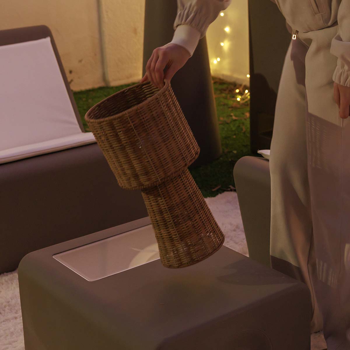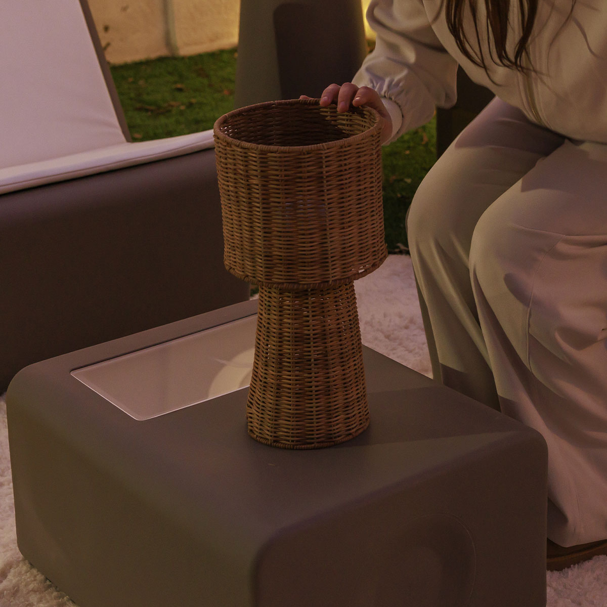 La lampada da tavolo decorativa Grace 40 Nature di Newgarden è intrecciata a mano con fibre naturali, donando calore e carattere a qualsiasi ambiente. È il complemento ideale per illuminare spazi interni o esterni protetti, creando un’atmosfera accogliente con uno stile naturale ben definito.