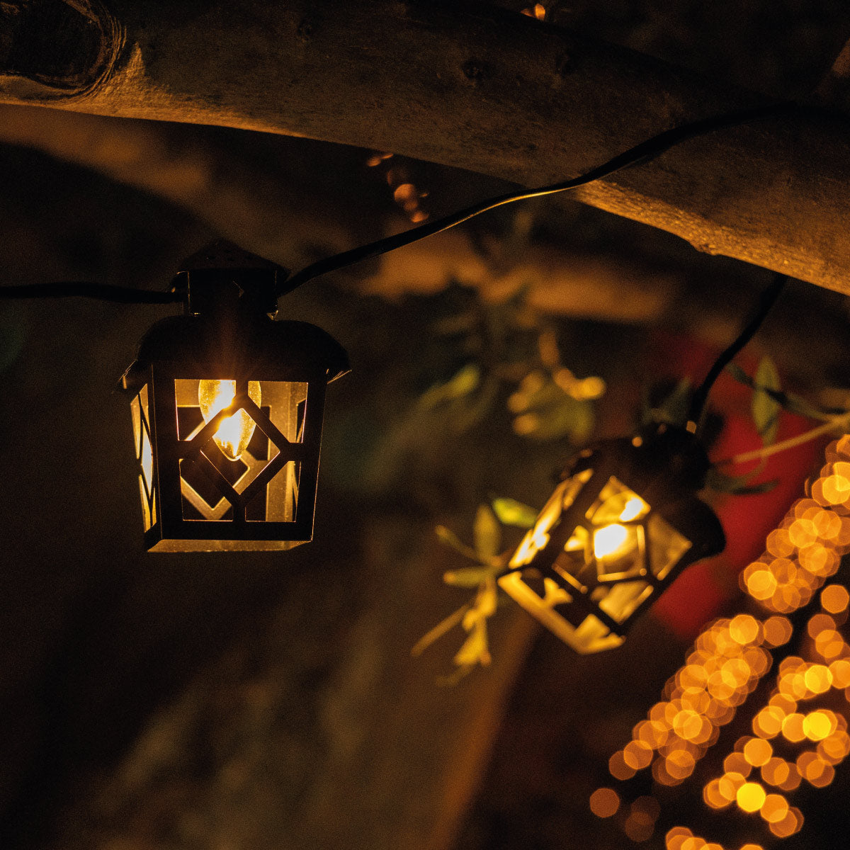 Ispirata alle strade di Londra. Con dieci paralumi meticolosamente realizzati in metallo, renderà la vostra casa un luogo speciale. Utilizzatele sia in giardino che in salotto, perché sono fatte per essere usate sia all'interno che all'esterno. 10 lampadine LED sostituibili.