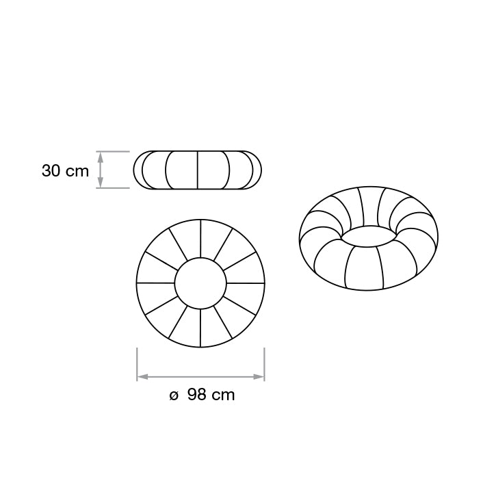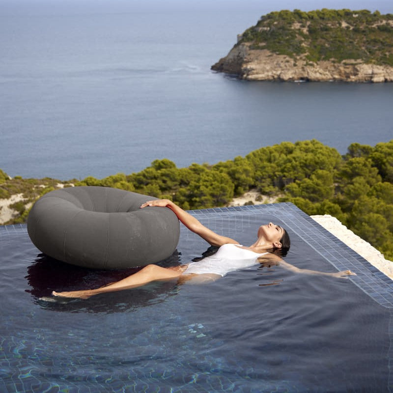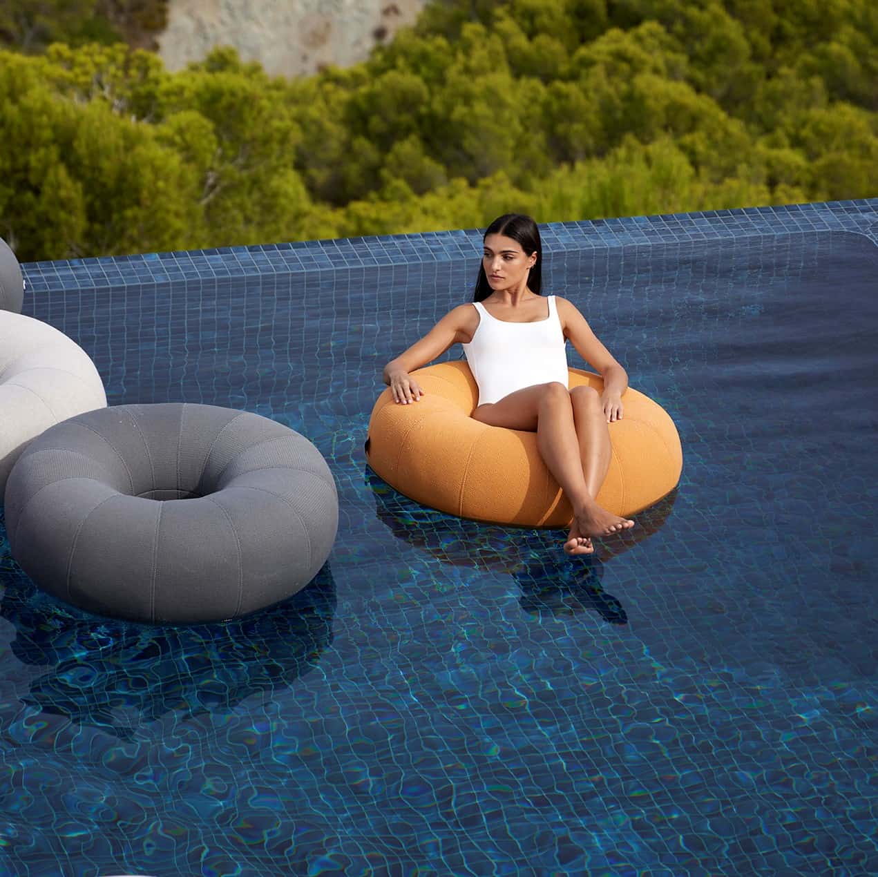 "AGORA 3D": tessuto tridimensionale, traspirante e drenante. Queste caratteristiche, unite all'imbottitura in polistirene espanso, consentono al prodotto di galleggiare.