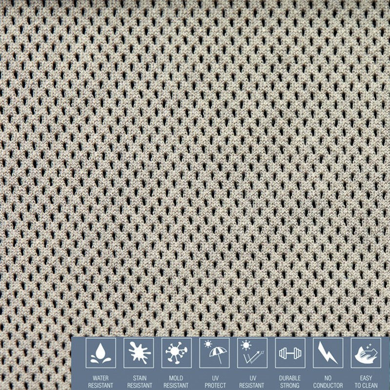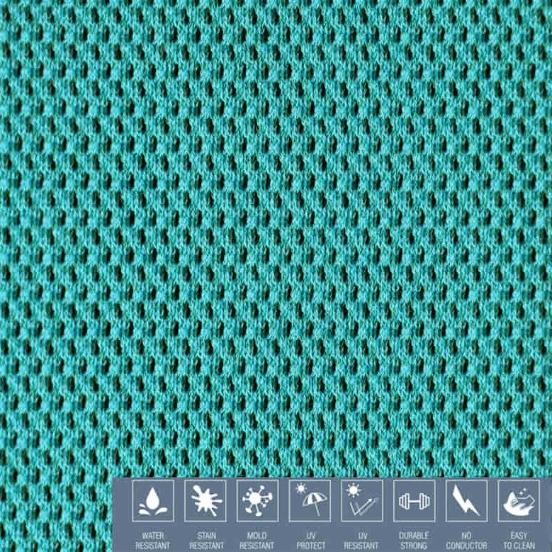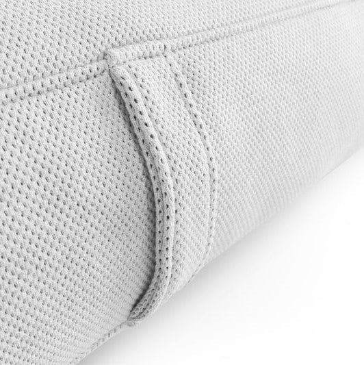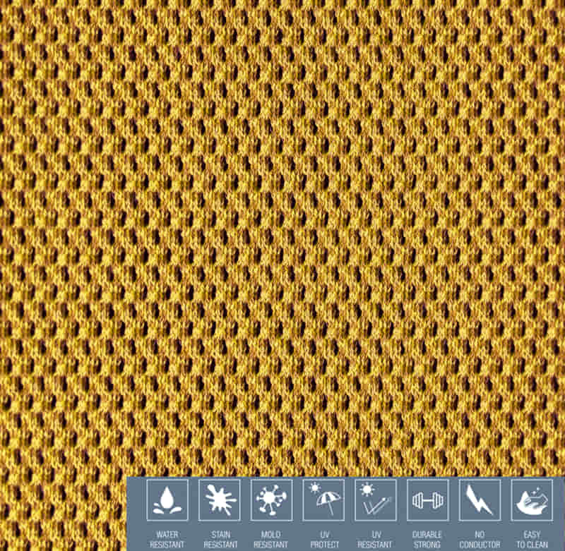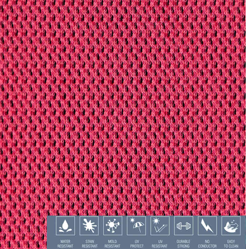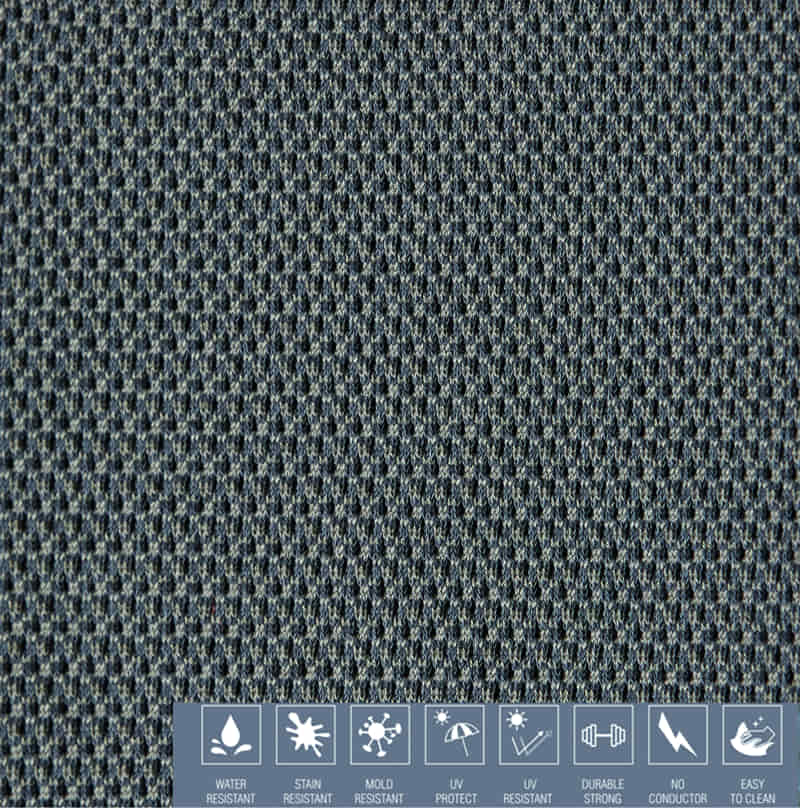 "AGORA 3D": tessuto tridimensionale, traspirante e drenante. Queste caratteristiche, unite all'imbottitura in polistirene espanso, consentono al prodotto di galleggiare.
