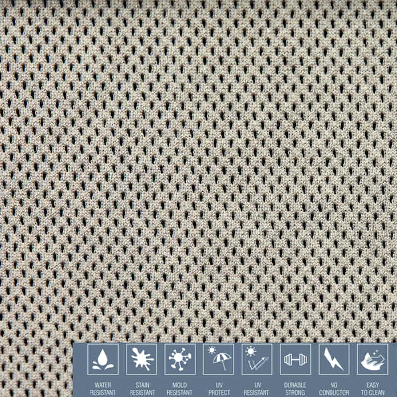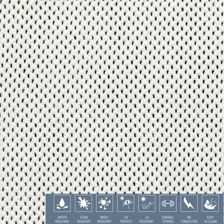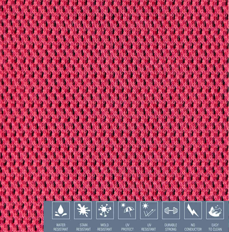 "AGORA 3D": tessuto tridimensionale, traspirante e drenante. Queste caratteristiche, unite all'imbottitura in polistirene espanso, consentono al prodotto di galleggiare.