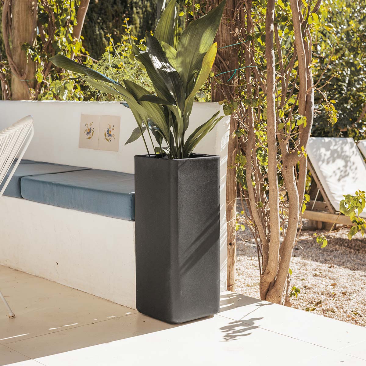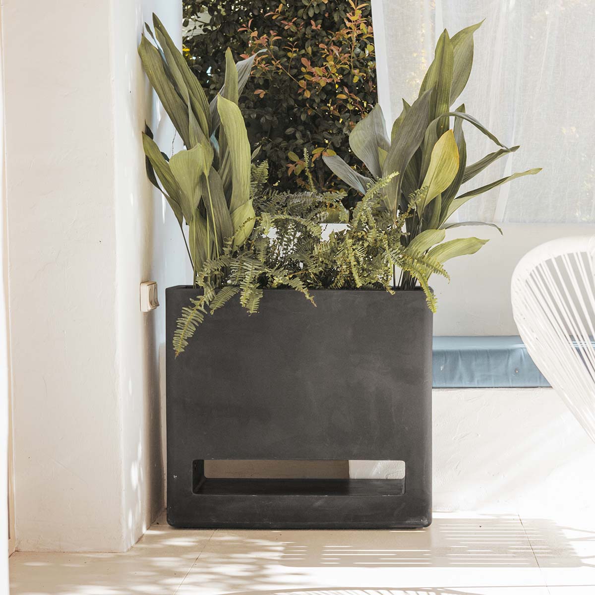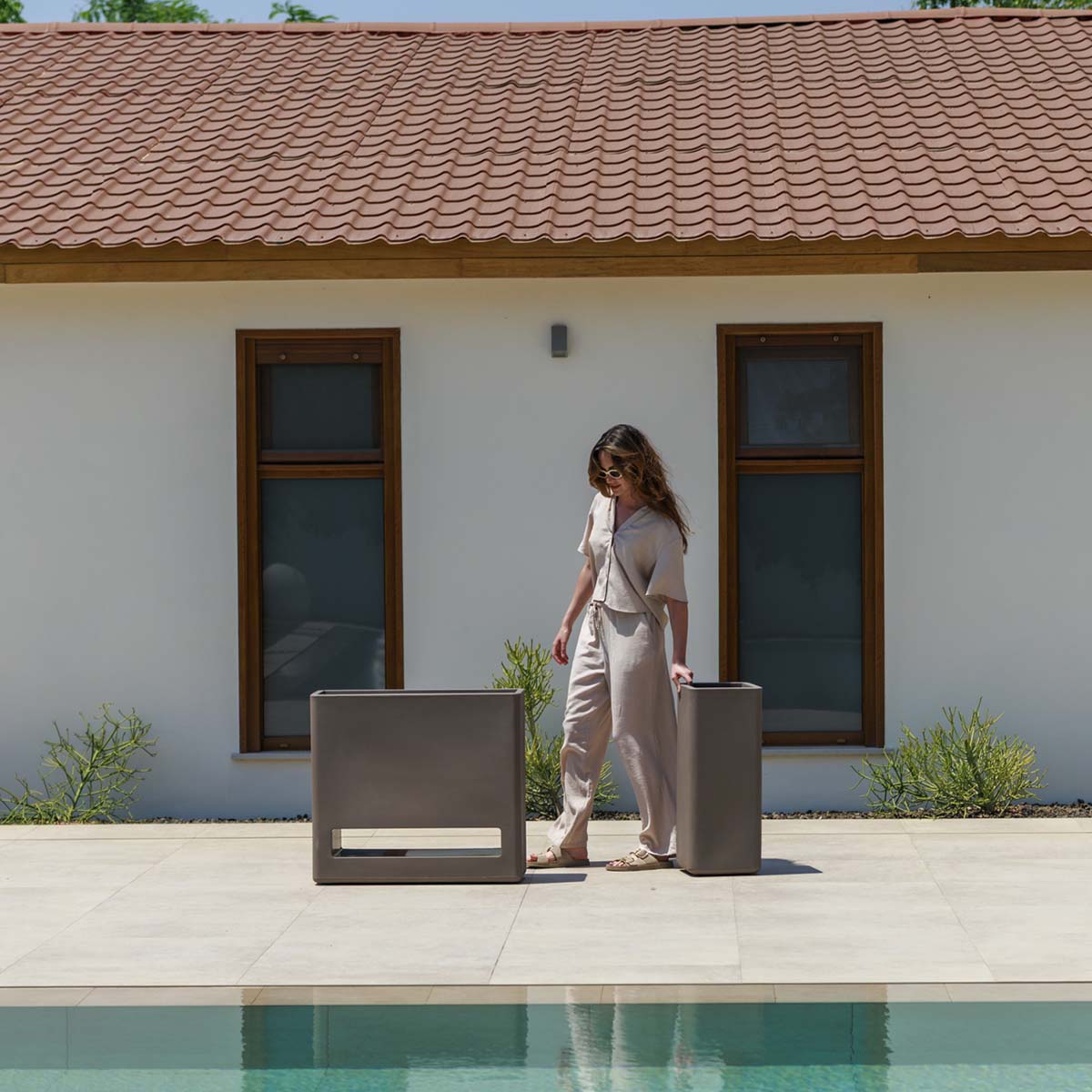 Bromelia è una fioriera rettangolare di media altezza, con un'ampia superficie di coltivazione. Ideale da accostare a un muro dritto e differenziare l'ambiente, in ristoranti, hotel, terrazze o spazi chill out.