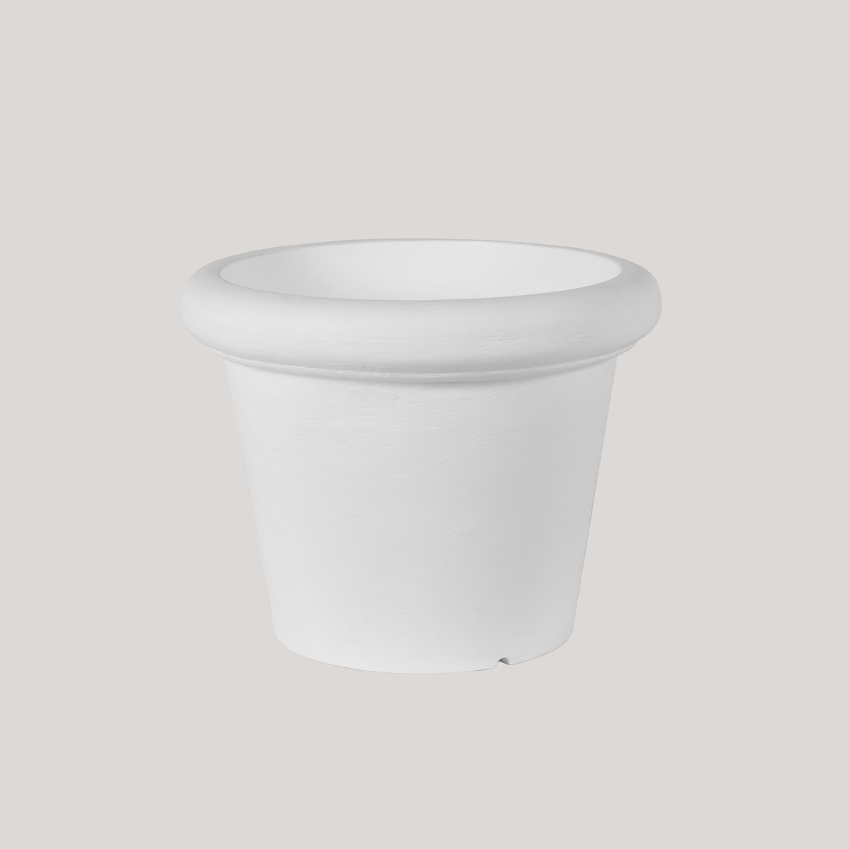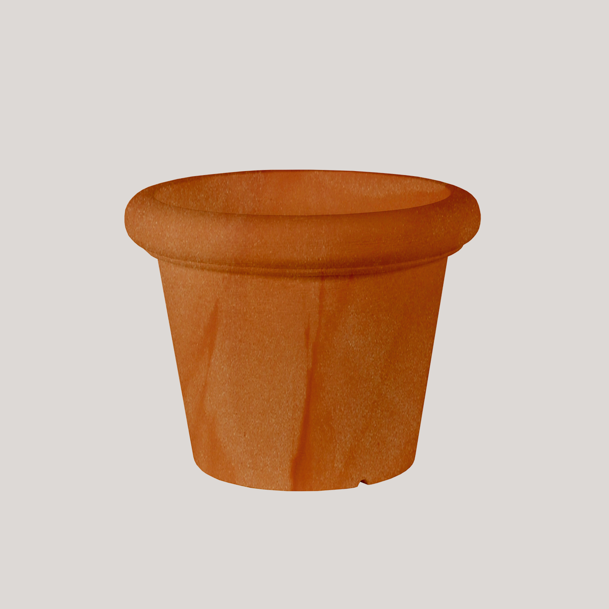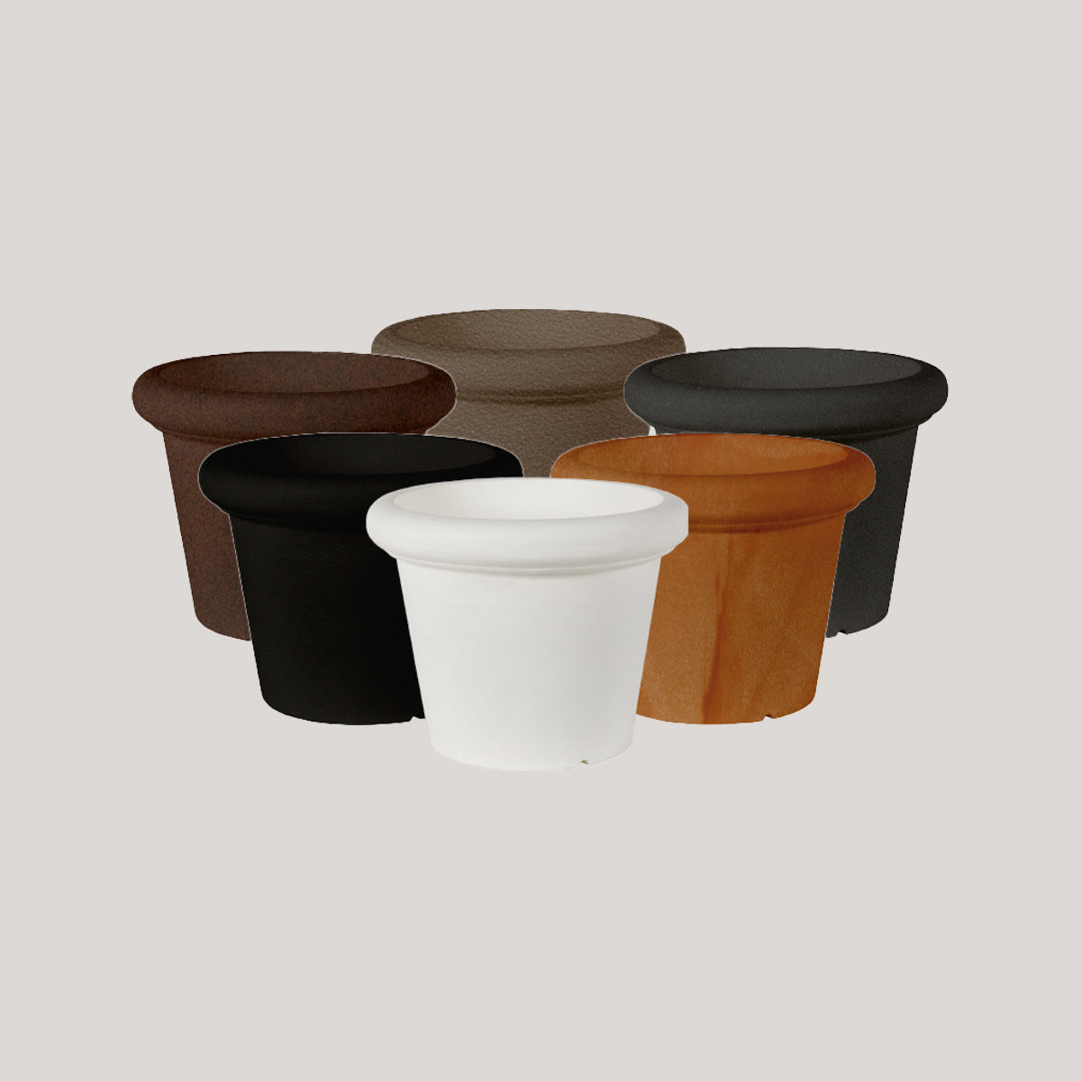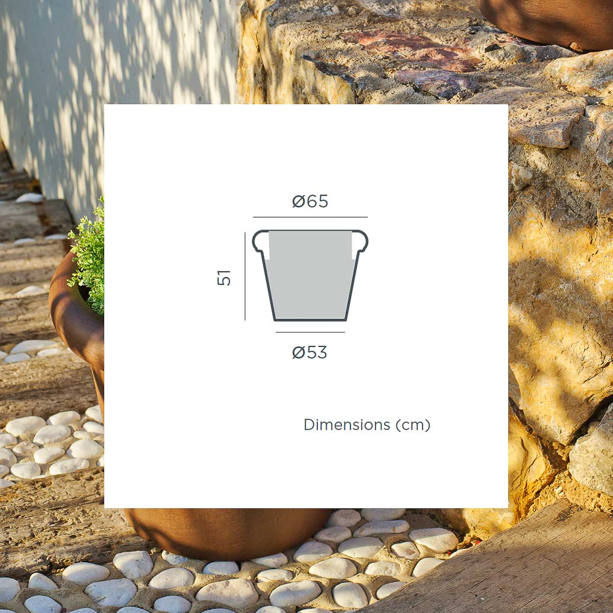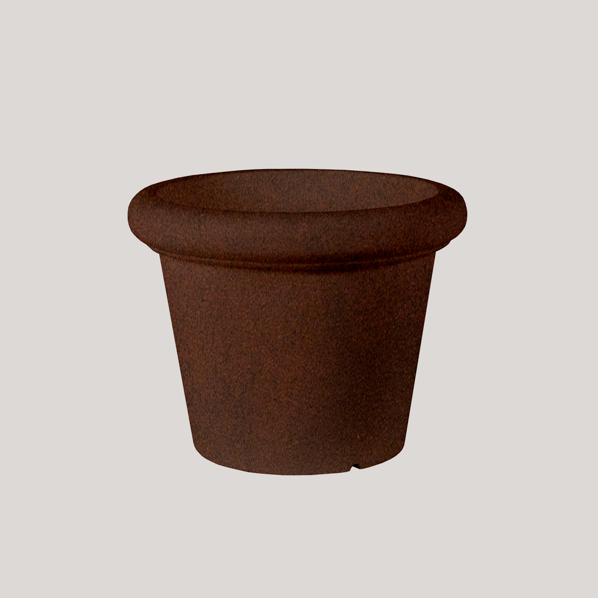 * ROSA 65 (ø65 x 51 cm) È una fioriera coniforme con un'ampia base per le piante. Le linee arrotondate e la texture della finitura rustica si ispirano al design delle fioriere classiche. Disponibile in varie dimensioni e colori.